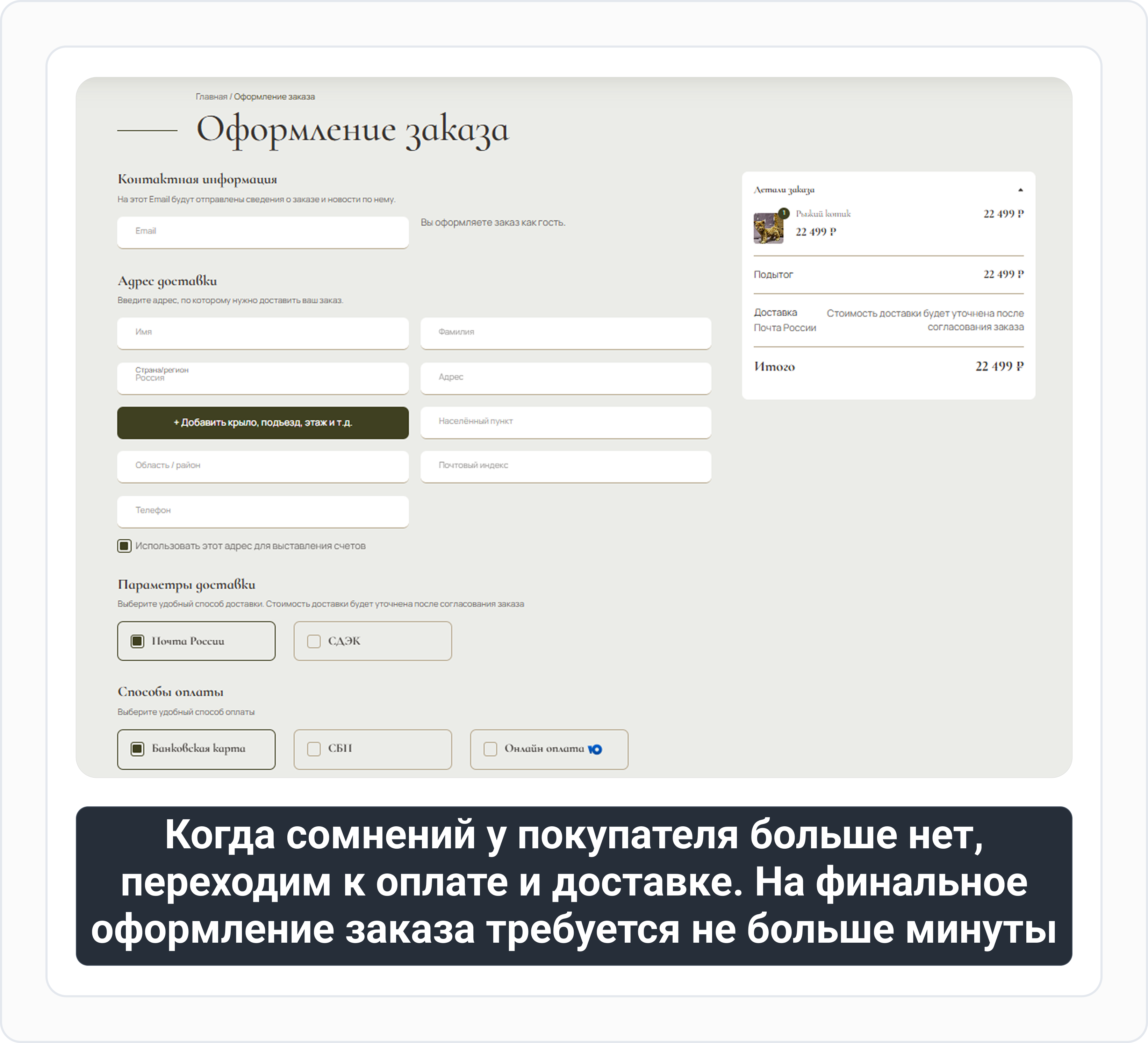 Мы позаботились о простоте и удобстве покупок. На сайте доступны привычные способы оплаты: банковские карты, СБП и онлайн-сервисы.