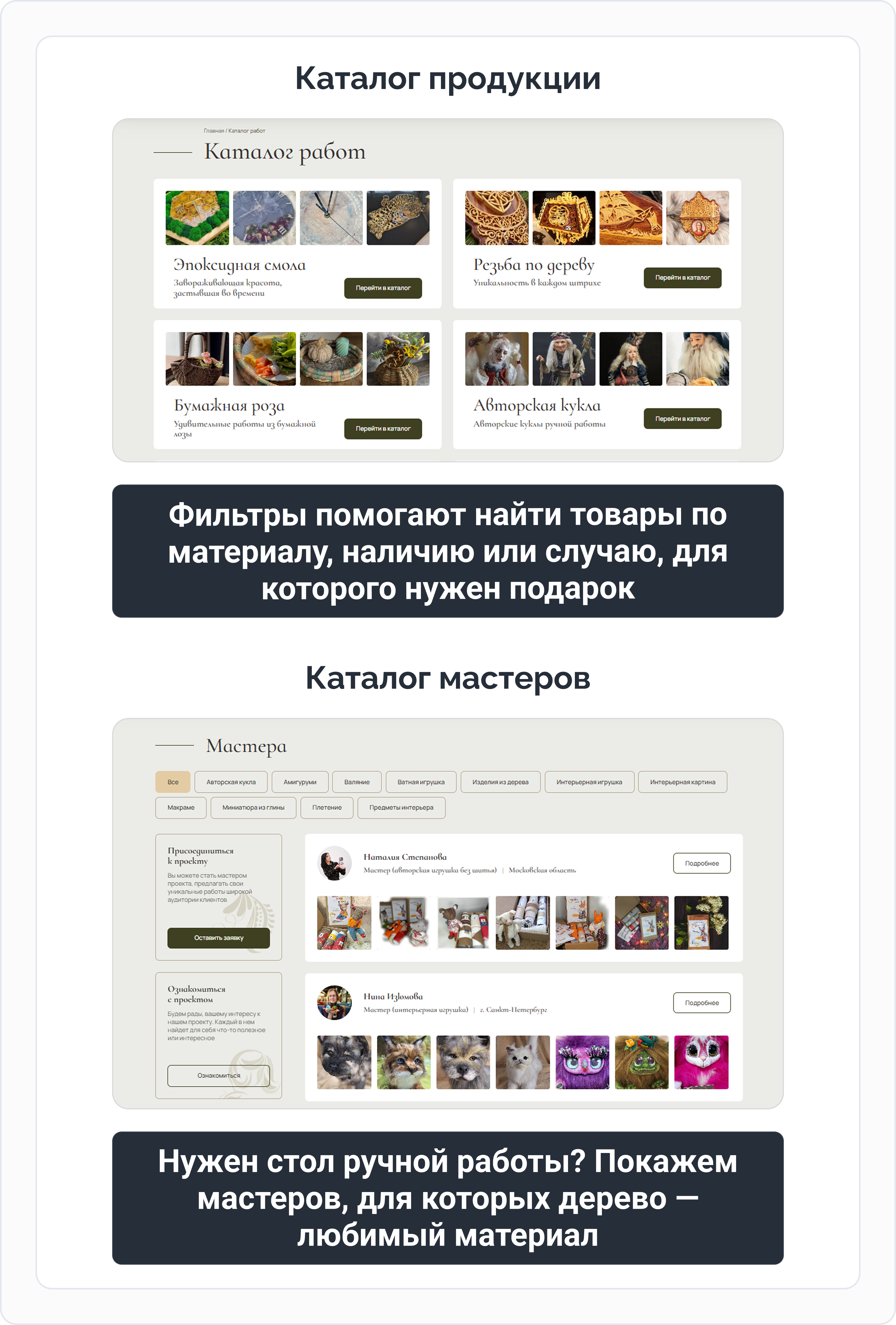 Это помогает покупателям увидеть, кто стоит за каждым изделием, и выбрать товар не просто глазами, а сердцем.