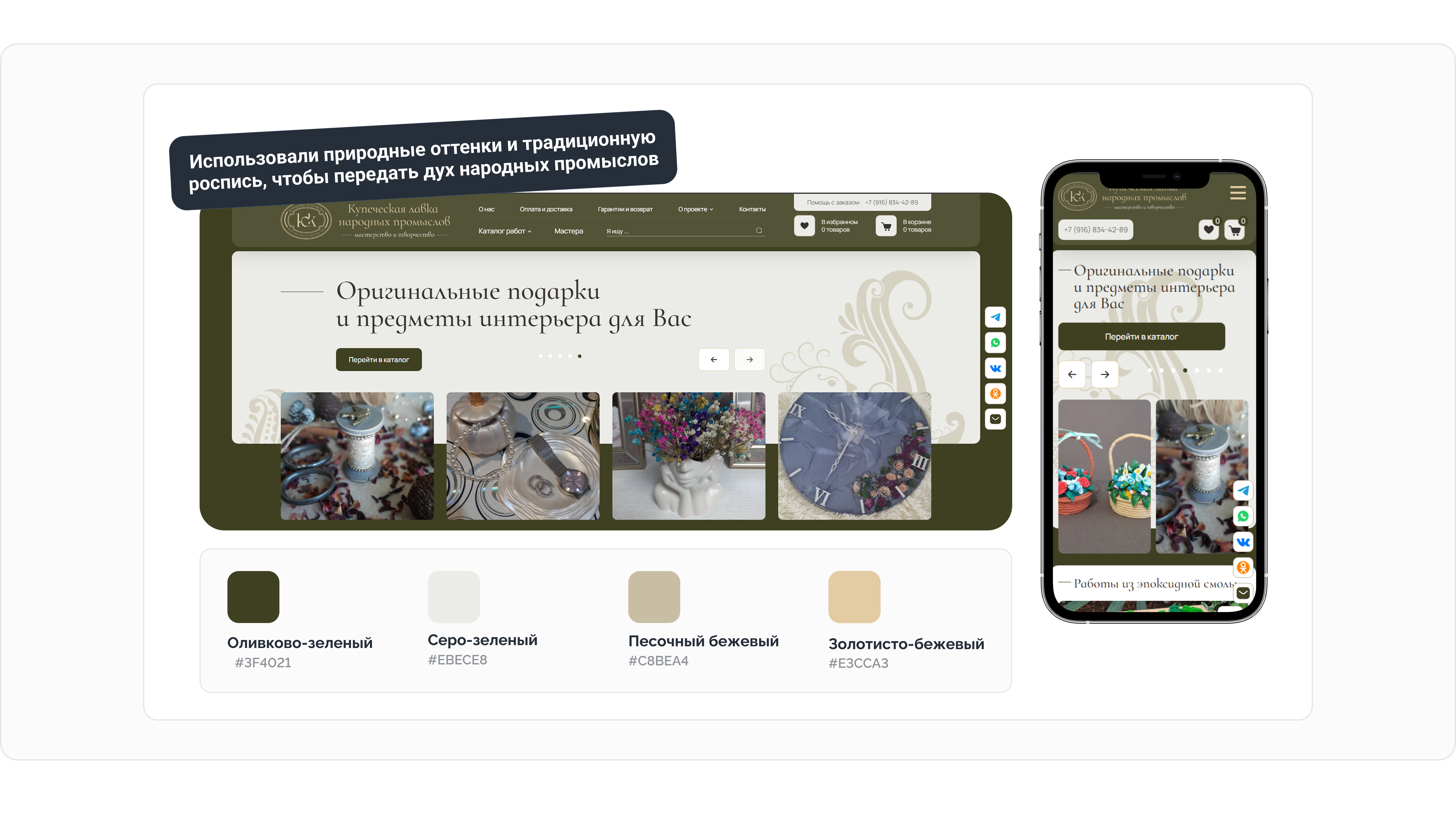 Основное переживание заказчицы было связано с дизайном. Была важна не типичная «шаблонная» картинка, а особая атмосфера творчества и ремесла.