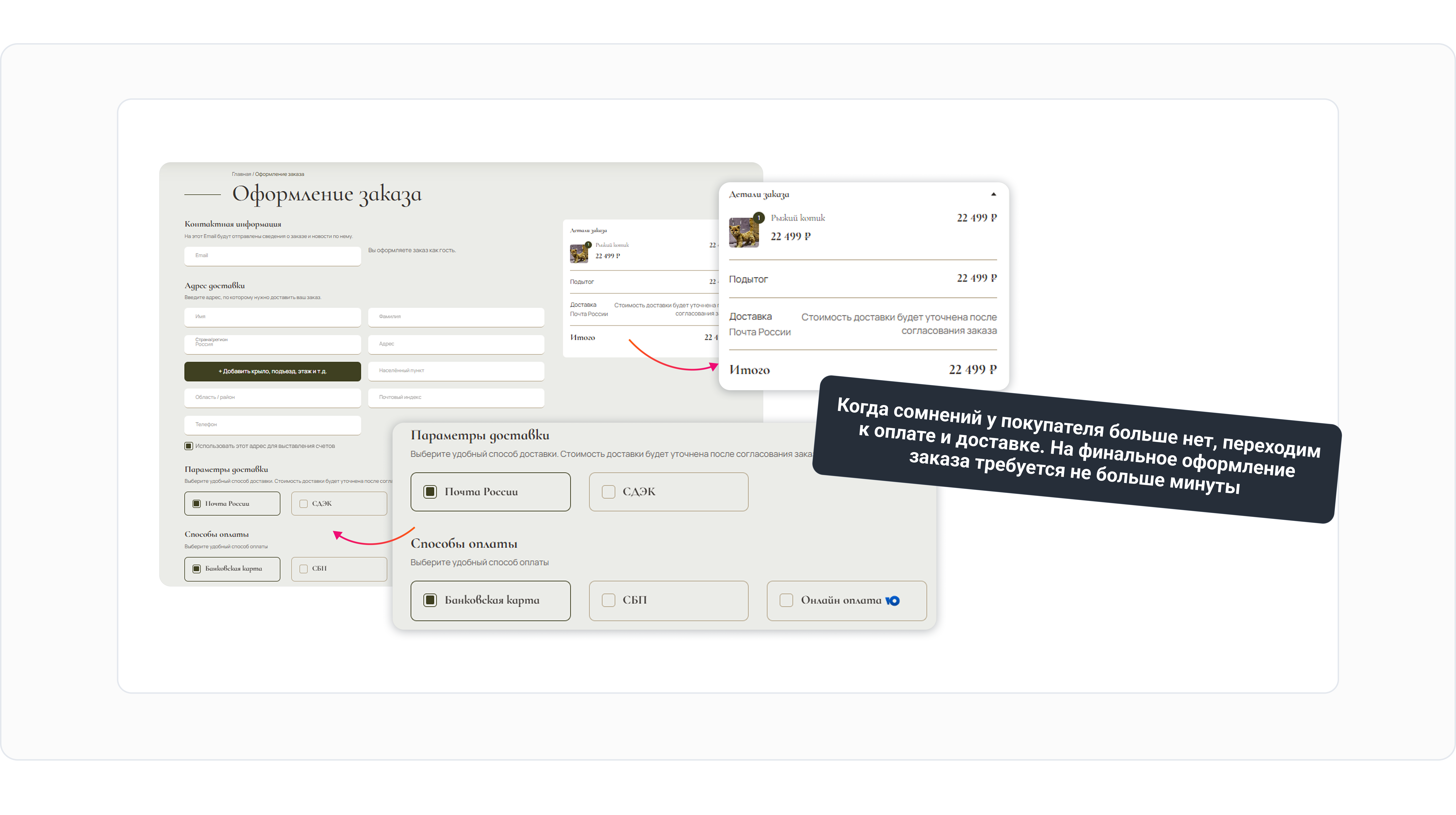 Мы позаботились о простоте и удобстве покупок. На сайте доступны привычные способы оплаты: банковские карты, СБП и онлайн-сервисы.
